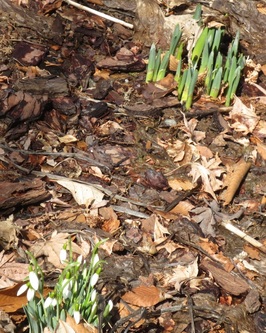 Today, the sun was shining warmly on the Arden Craft Shop Museum, and the first signs of spring were showing in the garden. Snow drops and the tips of daffodils are now visible after the snow melt from winter. These bulbs and others will be blooming in the Craft Shop garden, reminding us of the late Terry Colgan for whom they were planted. We miss her dearly.
